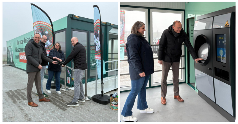 Tijdens de ingebruikname werd de werking van de machine direct gedemonstreerd. Met een grote hoeveelheid blikjes en flesjes werd zichtbaar hoe de automaat deze in korte tijd verwerkt en het statiegeld verrekent. Ook Statiegeld Nederland was hierbij aanwezig.